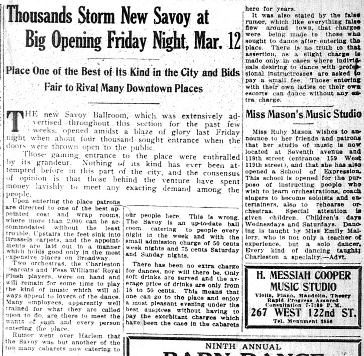 Mark the Savoy Home About the Savoy Ballroom Savoy timeline